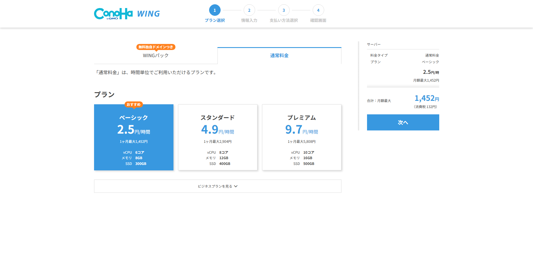1_2_プラン選択(ConoHa Pencil選択画面)